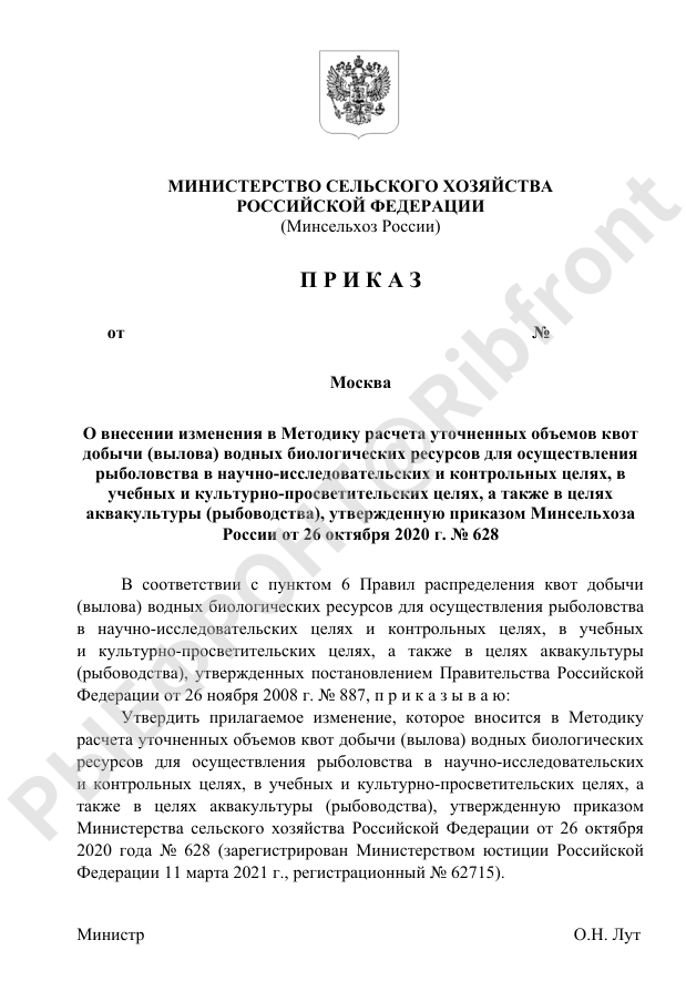 Минсельхоз предложил пересмотреть приоритетность в предоставлении квот для подведомственных Росрыболовству структур