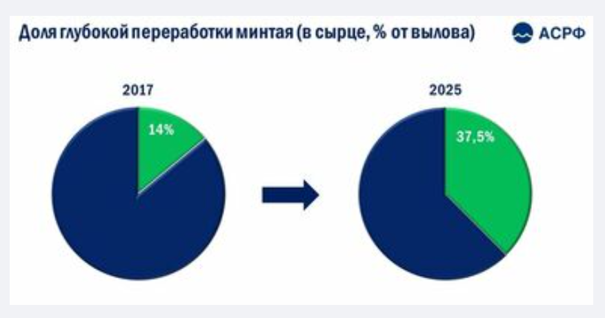 Ожидается, что с вводом новых мощностей доля глубокой переработки продолжит расти. При этом пока Россия по данному показателю существенно уступать основному конкуренту на минтаевом рынке — США, где в филе и фарш перерабатывается до 90% уловов.